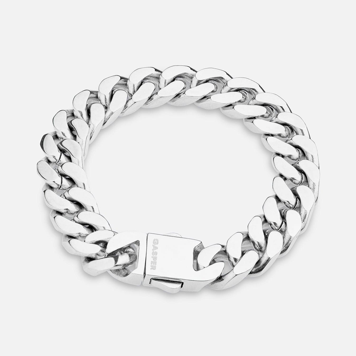 A clean Cuban bracelet with a straight cut that catches the eye. Features a branded buckle clasp.