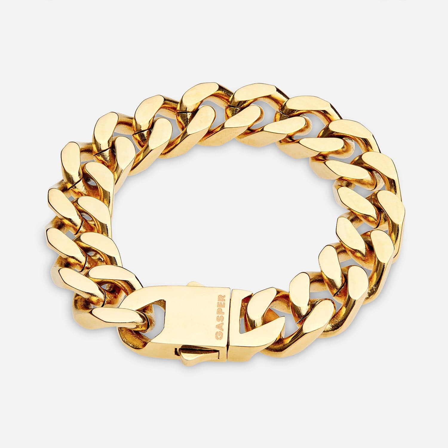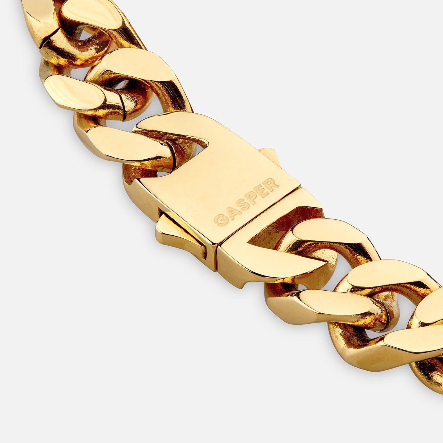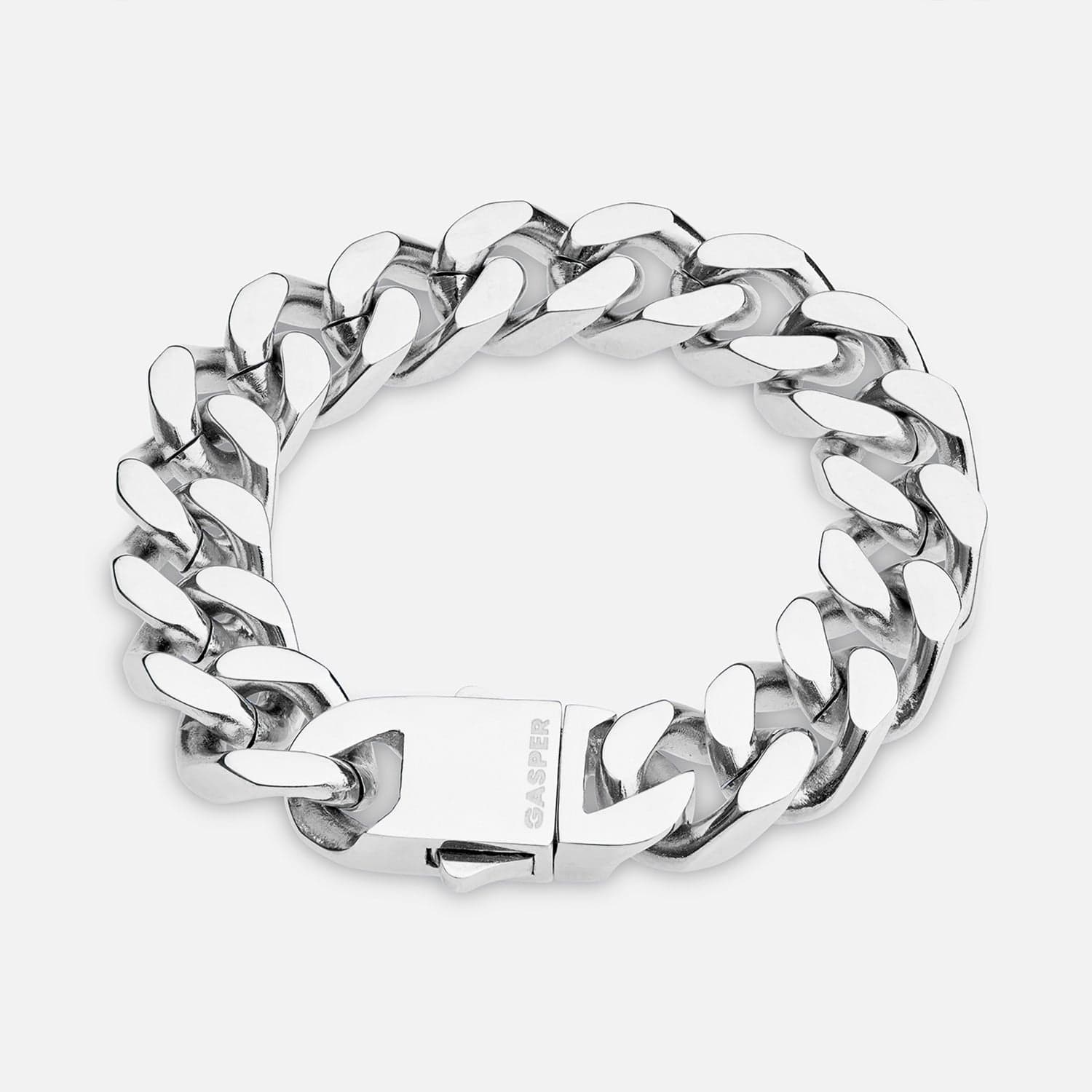 A clean Cuban bracelet with a straight cut that catches the eye. Features a branded buckle clasp.