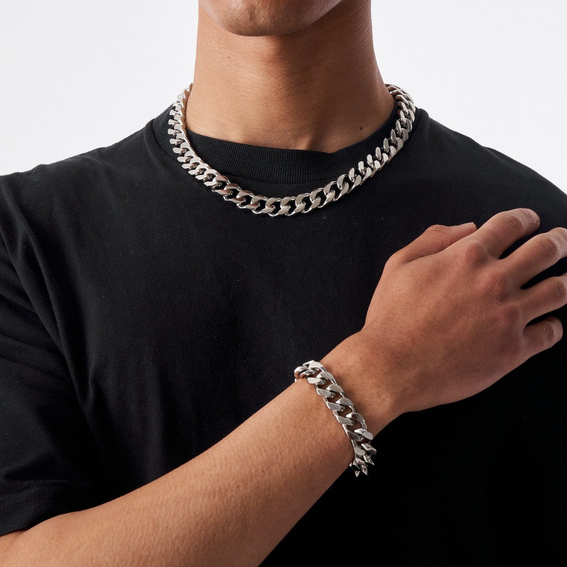A classic 14mm Cuban chain and bracelet combo, lights up your fit whether it's a grocery haul or a night out.