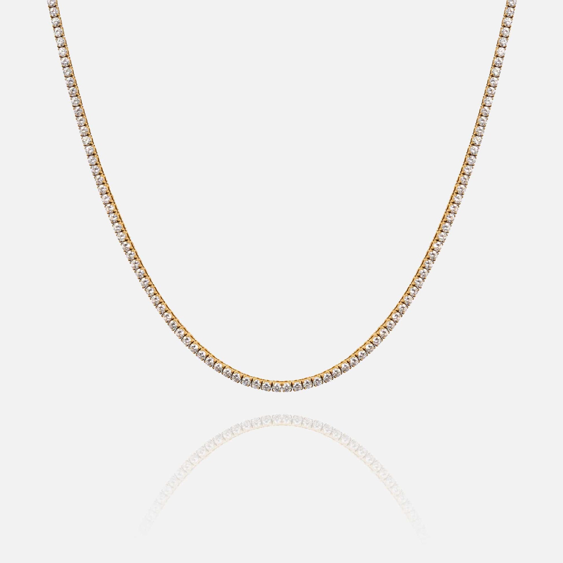 Gaspers classic clean cut 3mm Tennis necklaces adds a whole new dimension to your look. With the highest grade stones your neck will be dancing in the light 24/7, this piece will effortlessly elevate your look when worn solo or add that extra shine to any layer.
