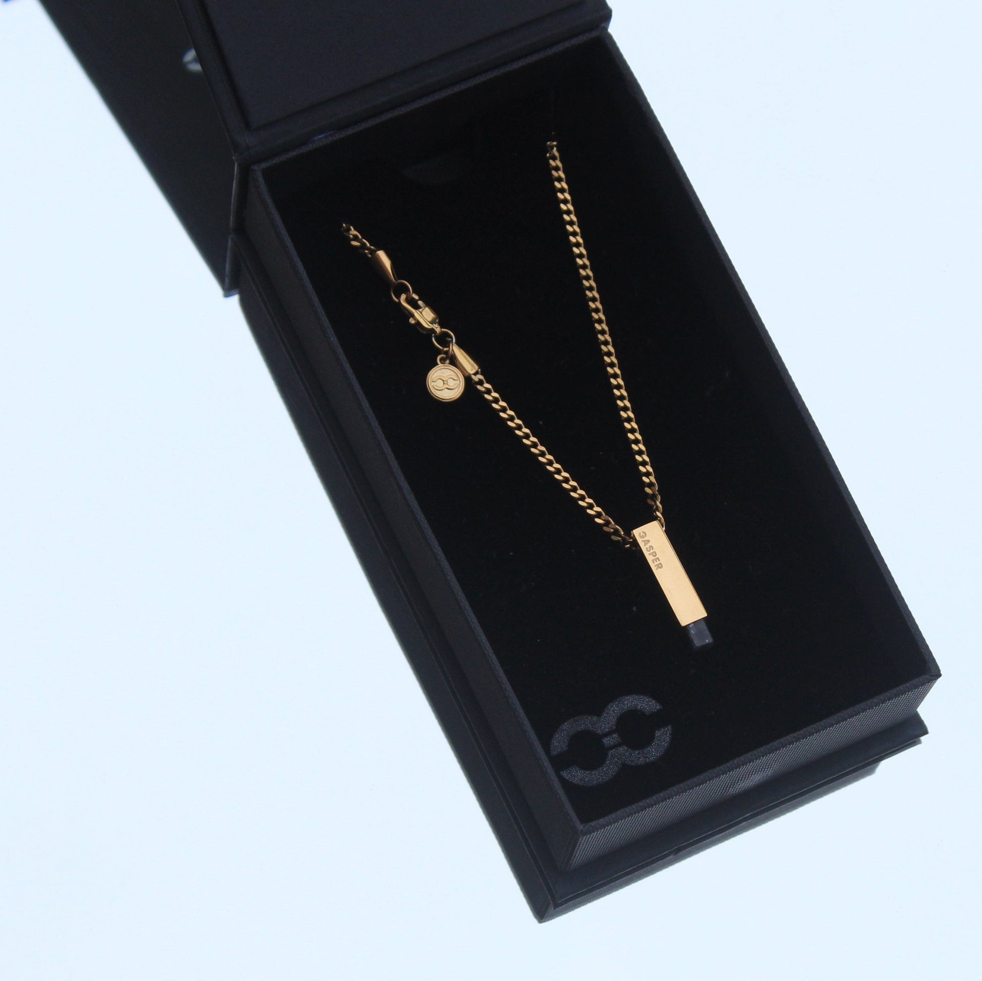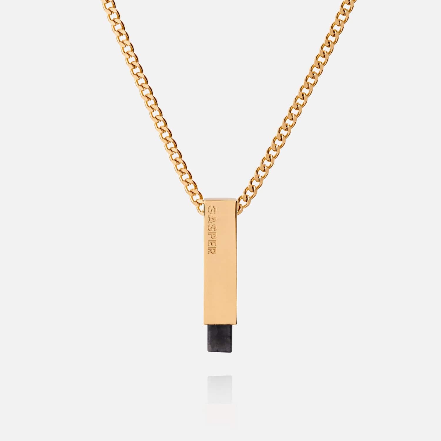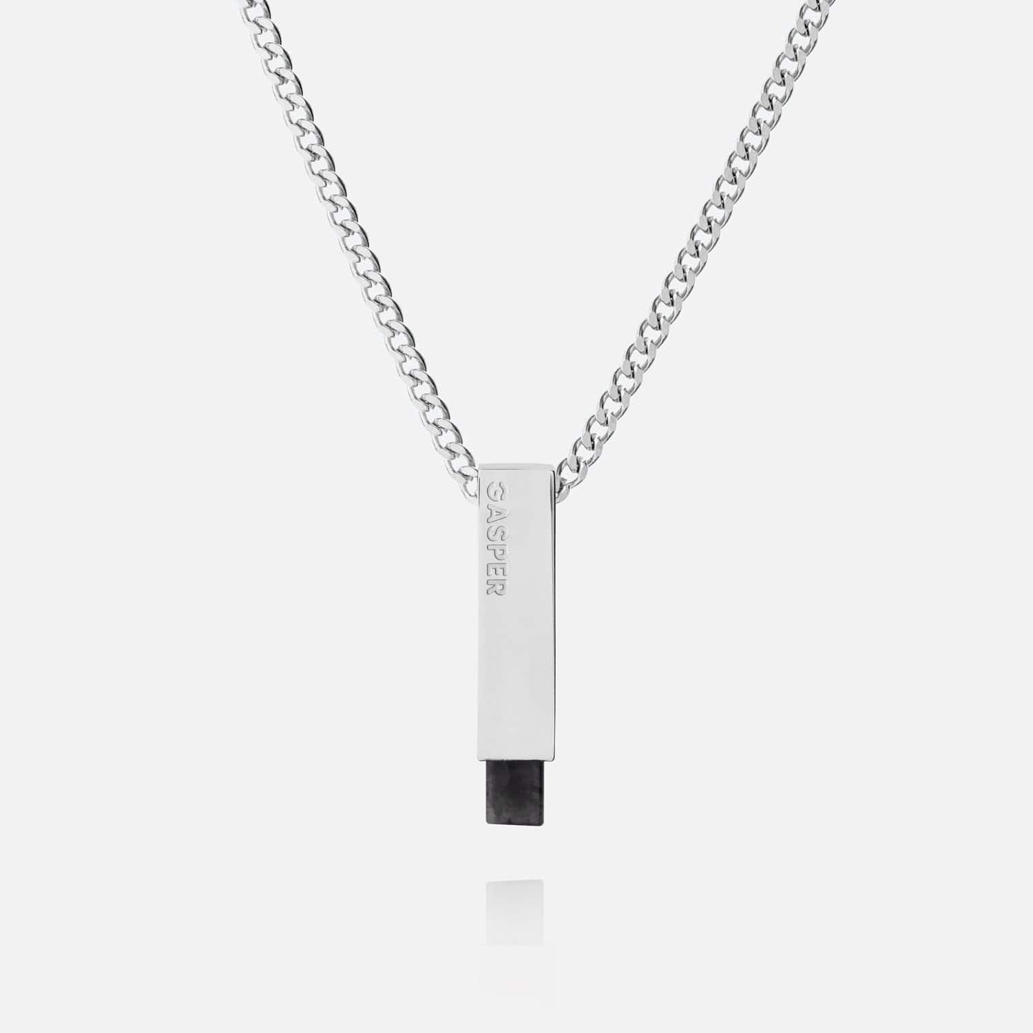 The Bar Pendant is a timeless piece that suits every occasion and outfit, emphasizing both style and subtlety. Finished with a polished surface, the pendant features the Gasper logo on one side, while the chain seamlessly passes through the pendant itself.