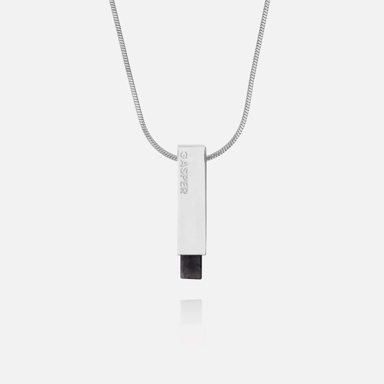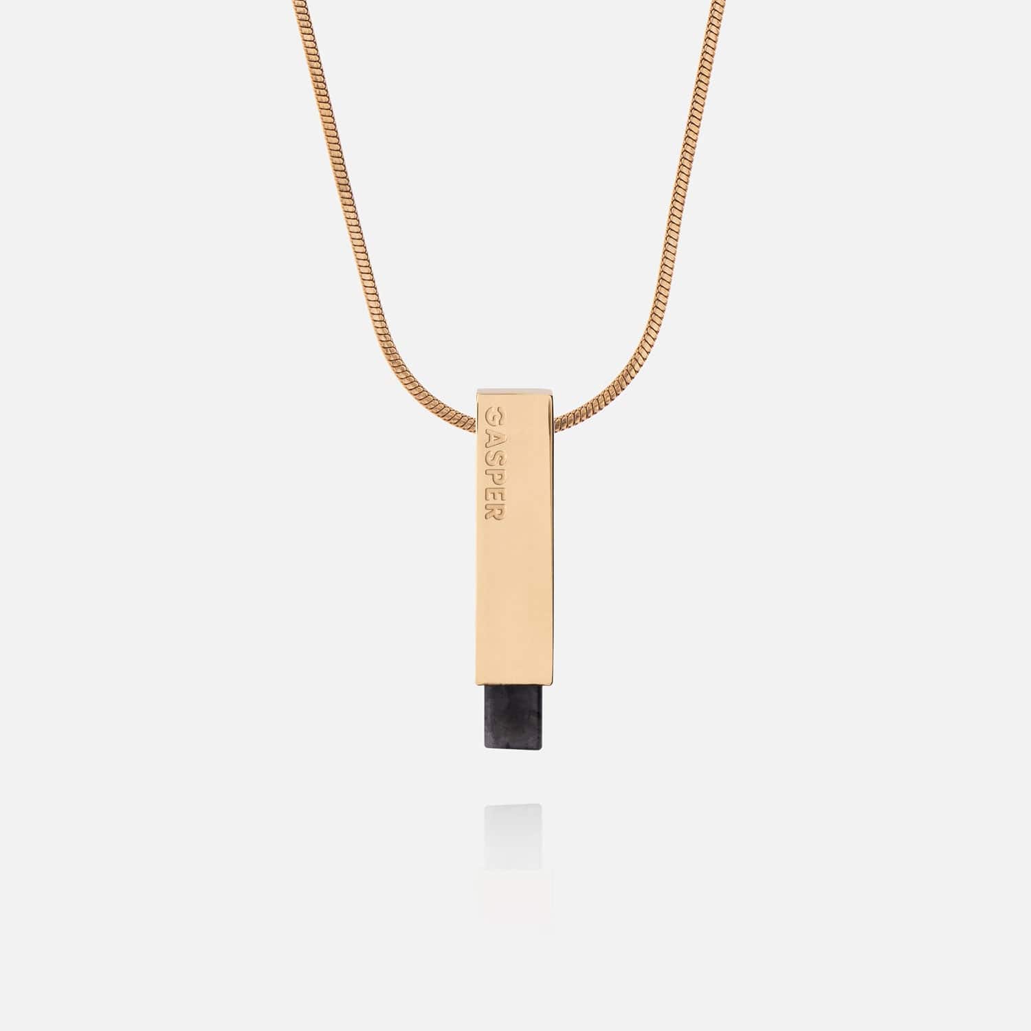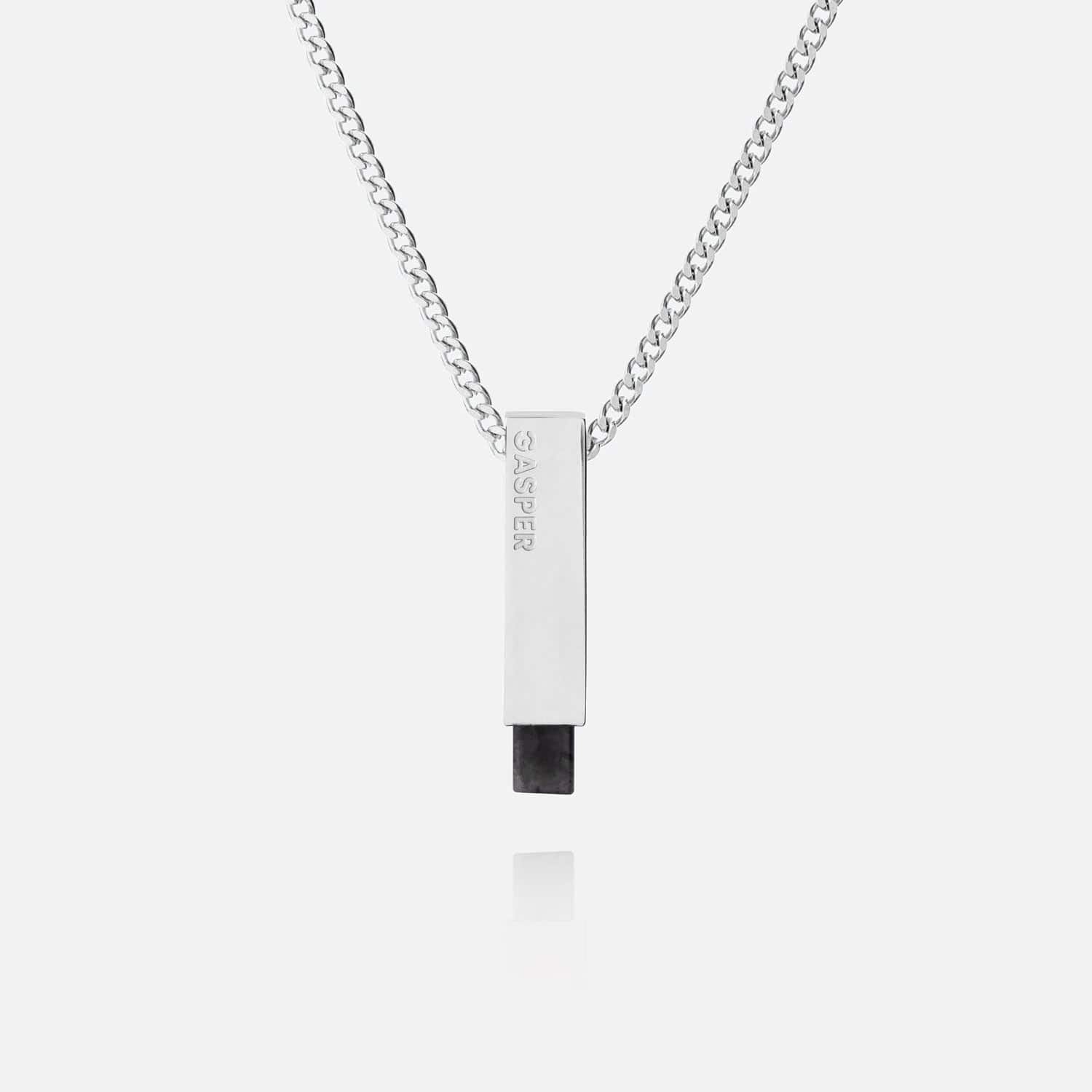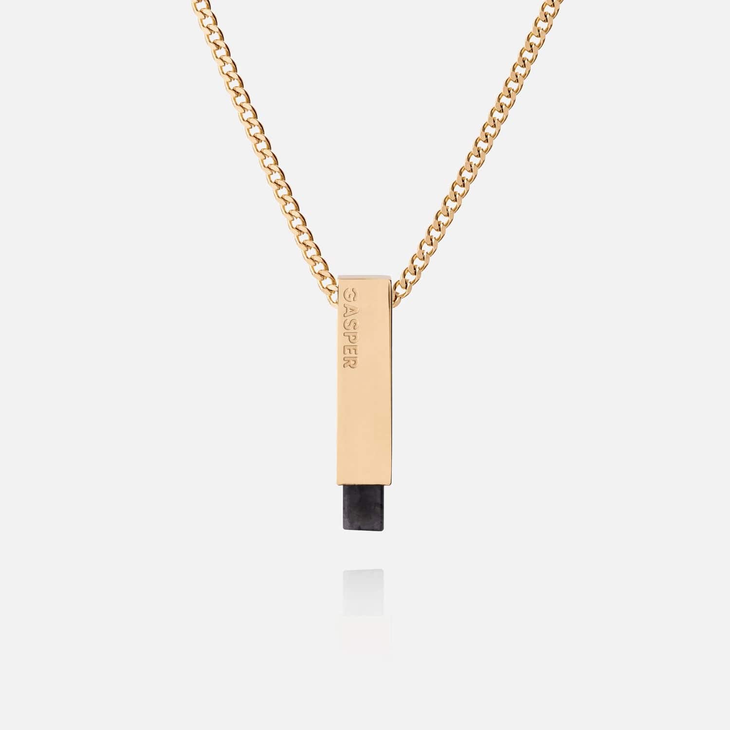 The Bar Pendant is a timeless piece that suits every occasion and outfit, emphasizing both style and subtlety. Finished with a polished surface, the pendant features the Gasper logo on one side, while the chain seamlessly passes through the pendant itself.