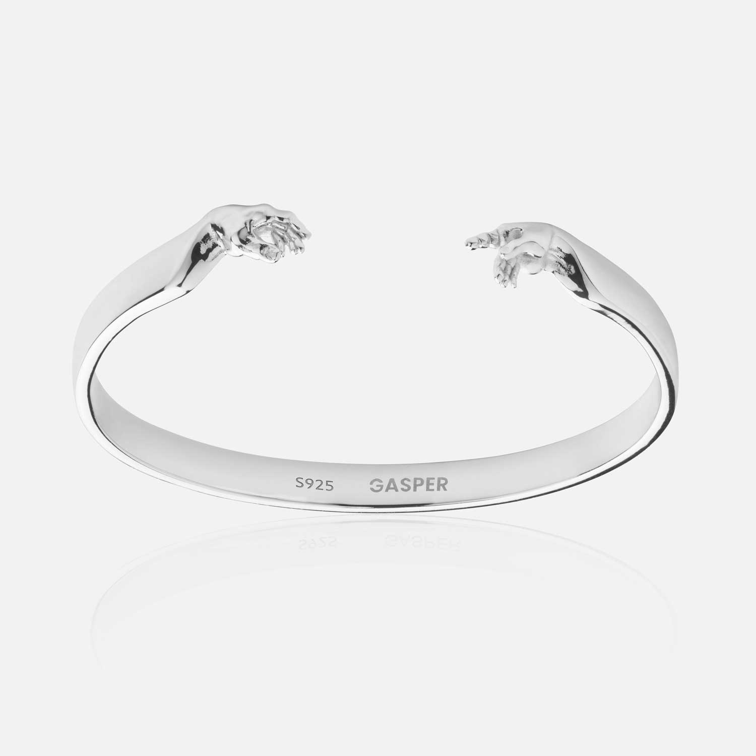 Taking inspiration from Michelangelos 'The Creation of Adam', this cuff depicts the connection of a higher power with a human being.