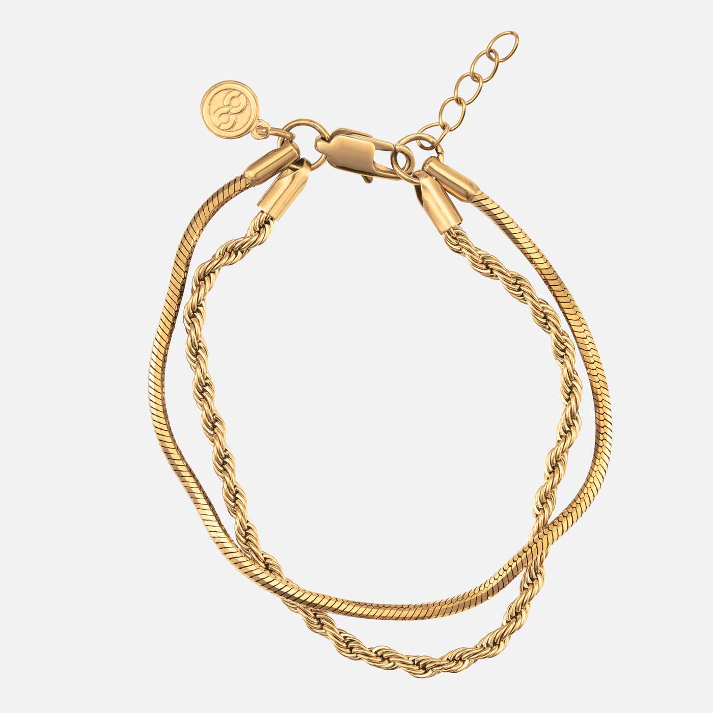 Layering made simple. Feautring a a 3mm Rope and Octagon bracelets on a single piece with a 0.5" / 1cm extension for the perfect fit. Finished off with our signature Infinity tag that signifies - this piece is made to last a lifetime. You simply can't go wrong with this one.