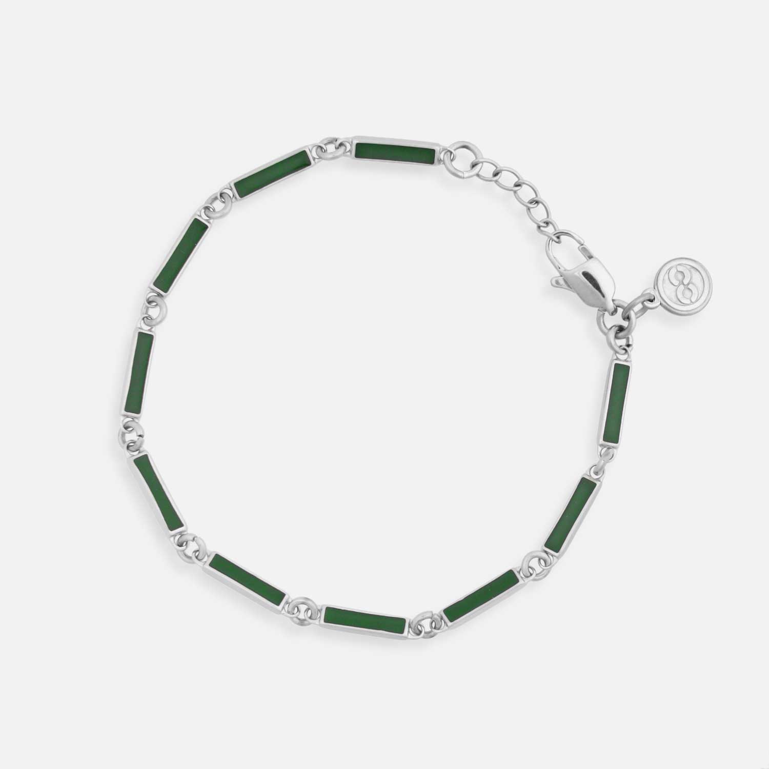 The Flush Bracelet in green enamel brings a natural vibrancy to your collection. Drawing light inspiration from the Mediterranean palette, it’s designed to be both minimal and meaningful, adding color without overpowering your look.