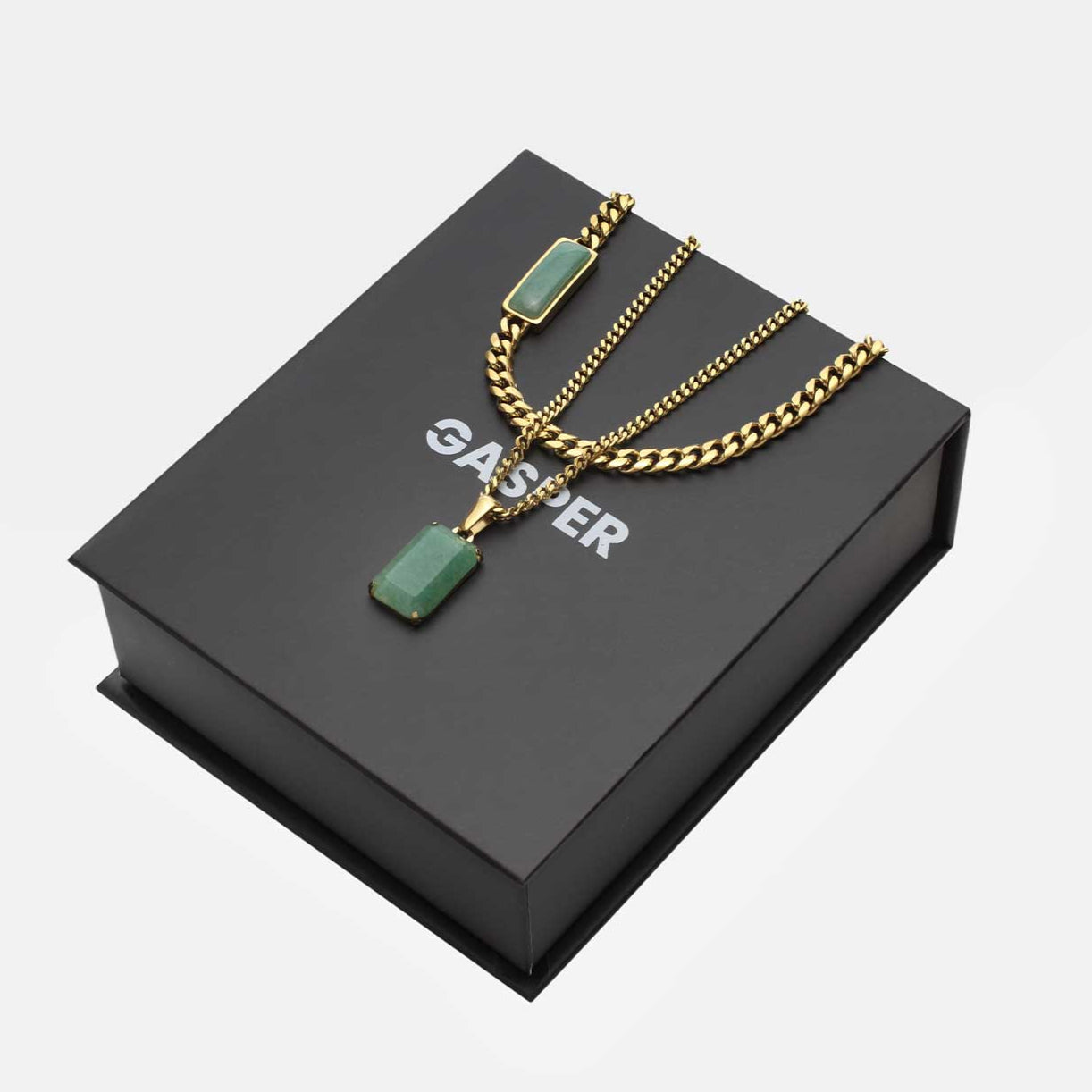 Made for the man that values versatility. Built to be worn 24/7, the Fusion Aventurine Gift Set contains a chain and a bracelet with a vibrant Aventurine stone as the center piece.