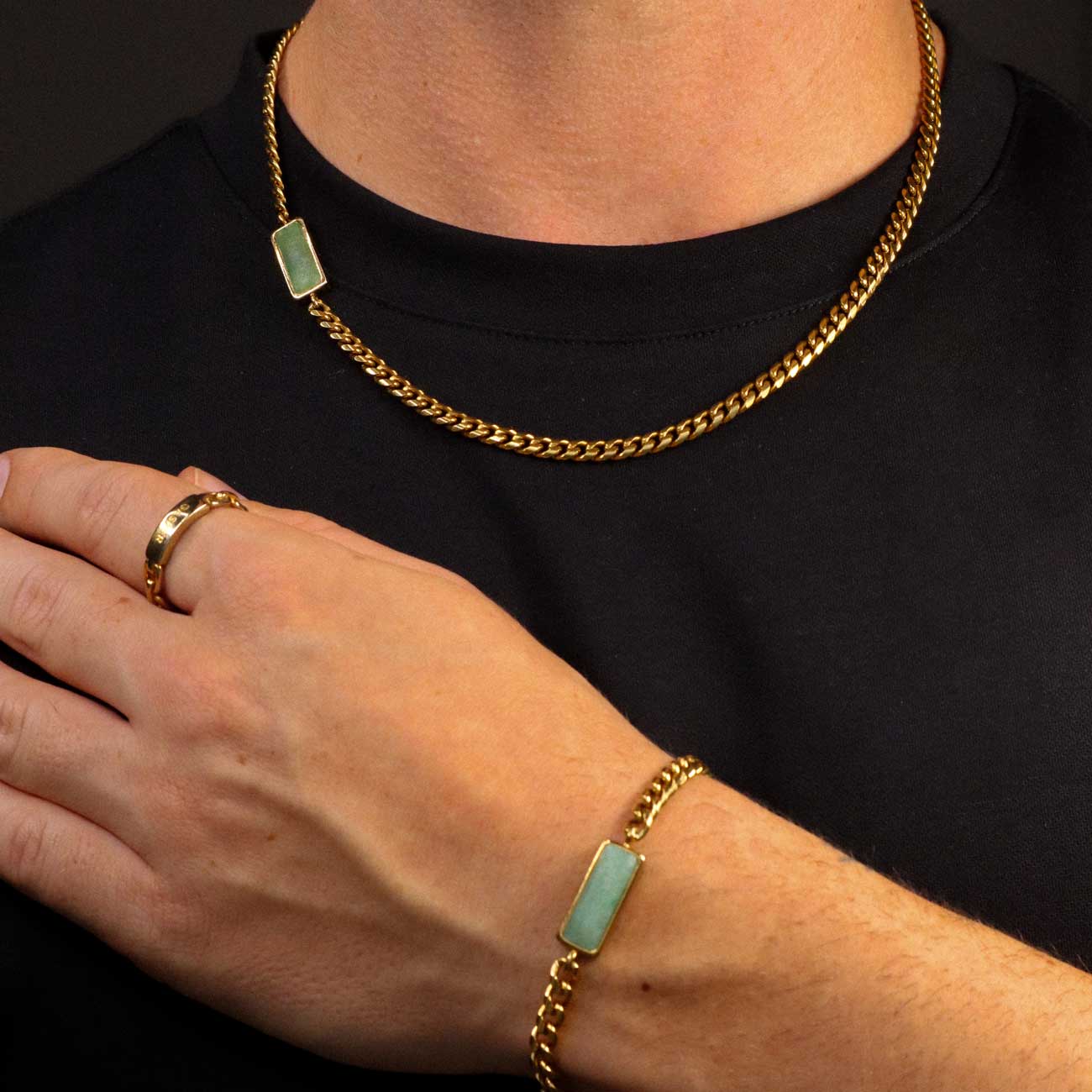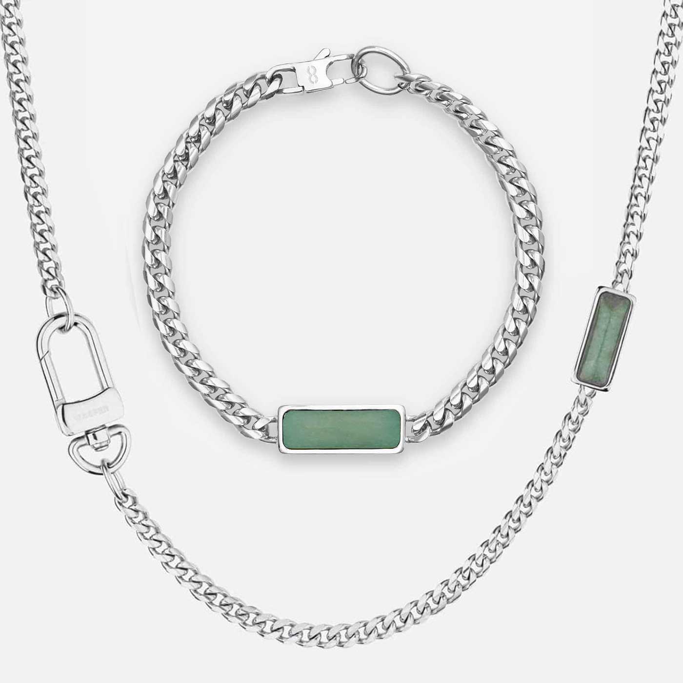 The classic Cuban chain reimagined, a piece that will not go unnoticed. Features an Aventurine stone pendant coupled with our viral toggle clasp - the perfect wingman. The set includes a chain in 20" / 50cm length and a bracelet of your chosen length.