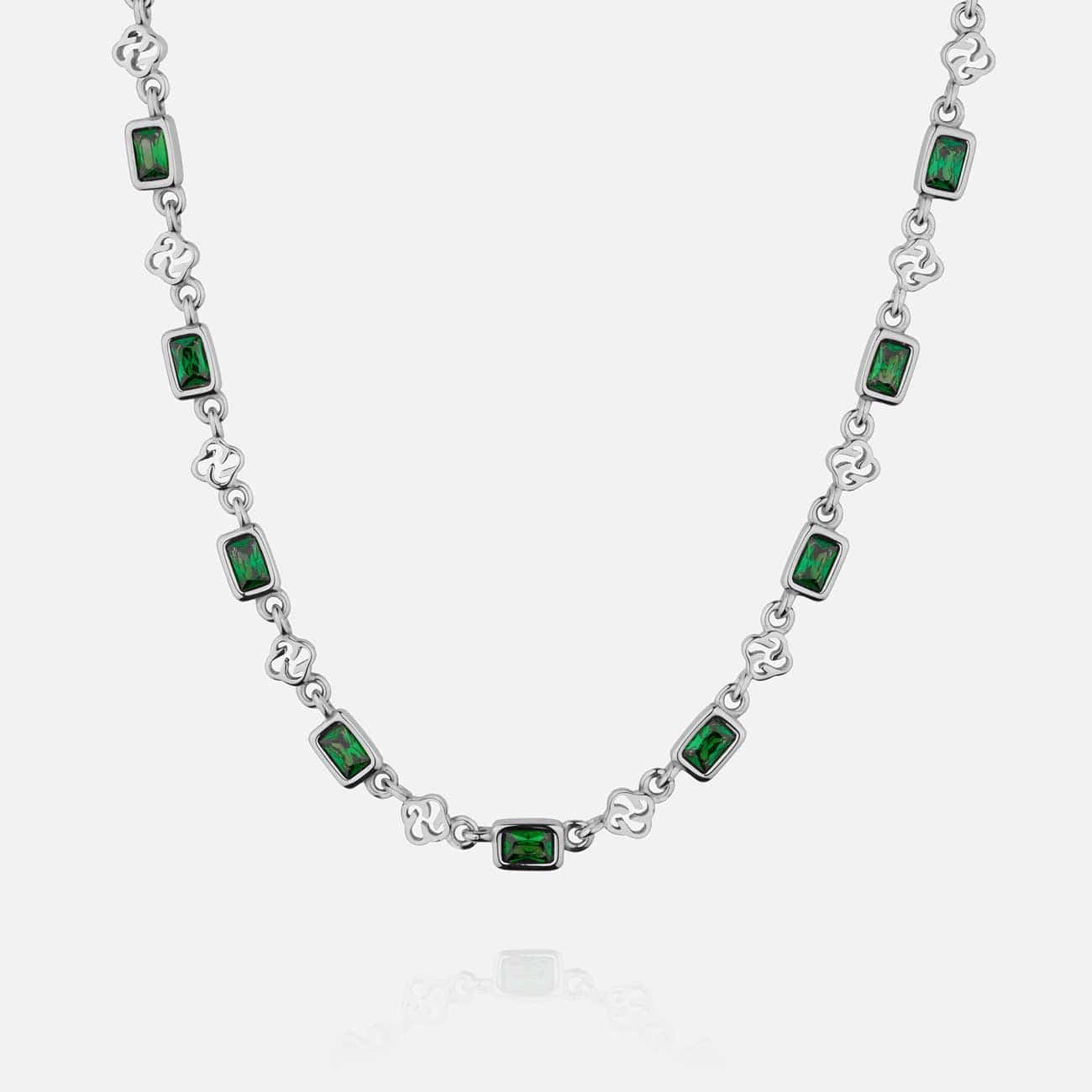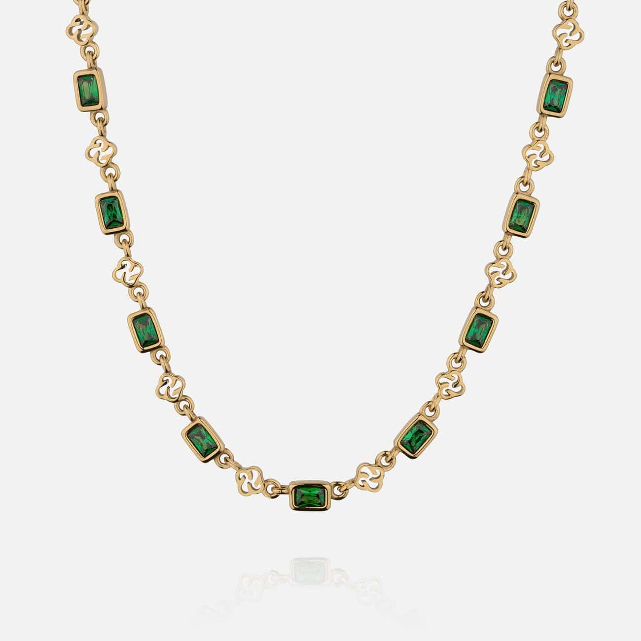 The Gemstone Chain is a mix of the rich green Emerald stone and our Heritage motif that creates a vintage-looking piece, finished off with a heavy-duty lobster clasp for maximum comfort and durability.