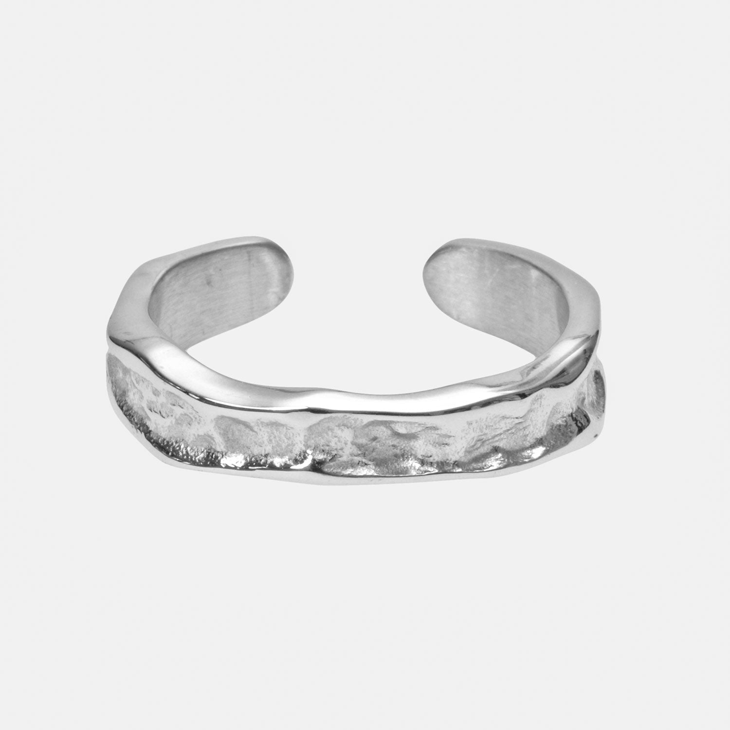 This ring brings together raw texture and timeless form — each subtle hammer mark catching light in a way that feels natural, intentional, and quietly bold.