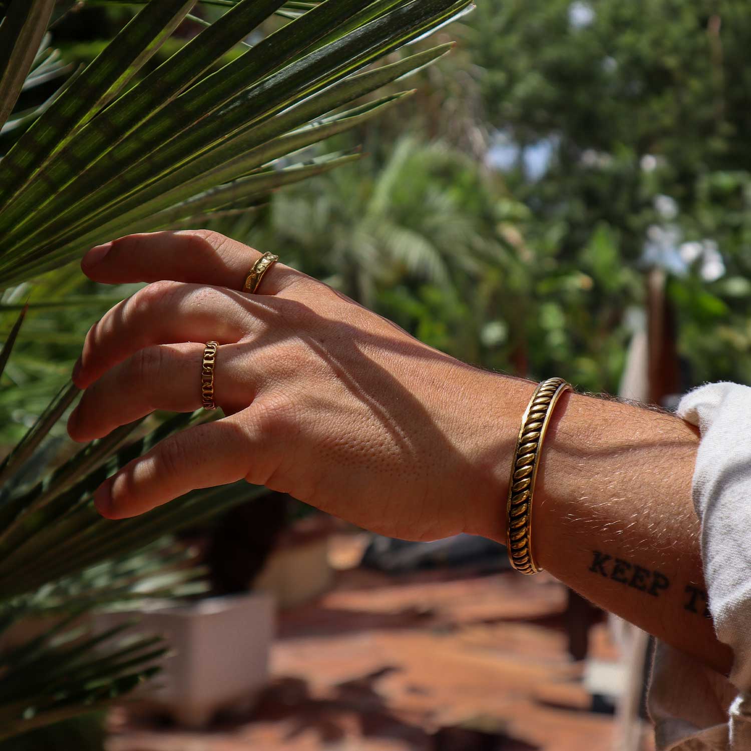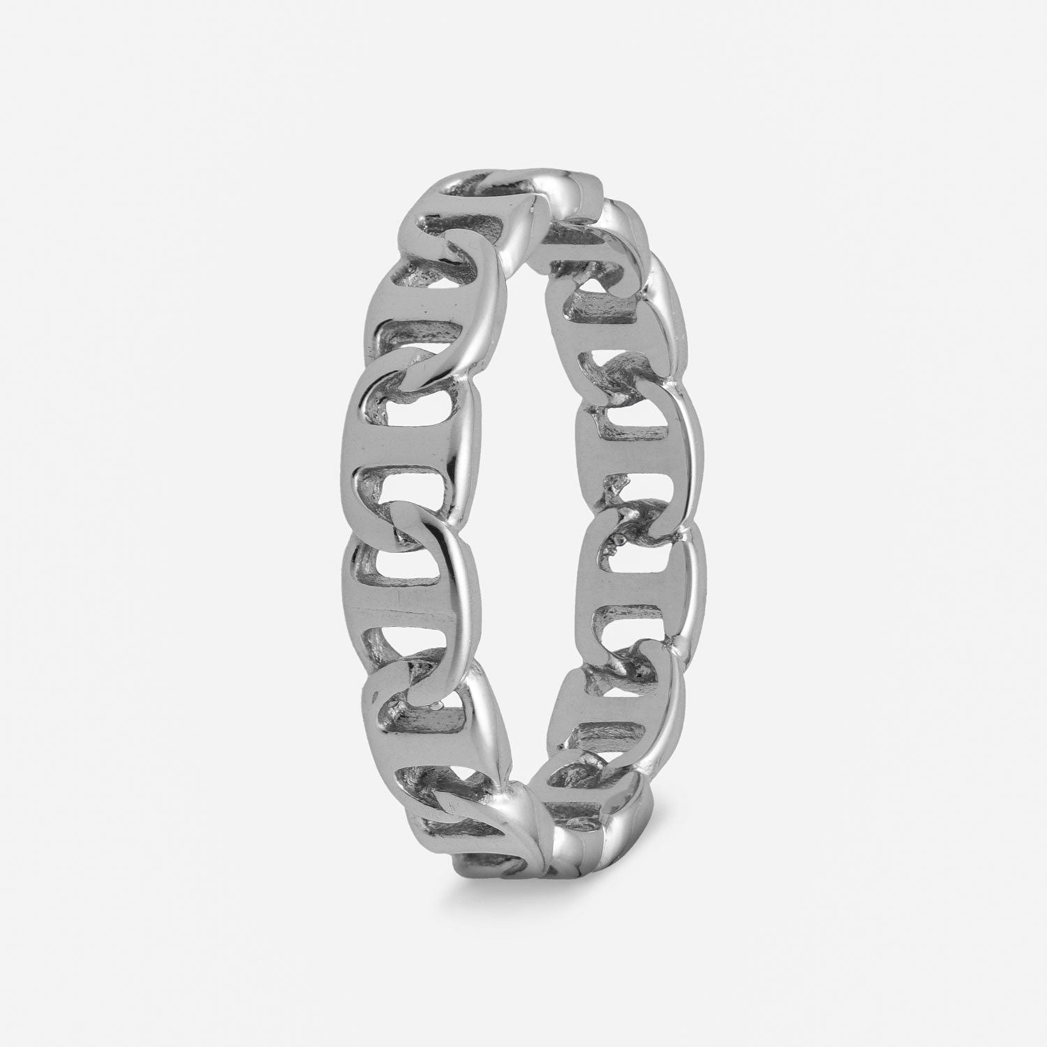 Inspired by classic mariner chains, this ring features a seamless pattern of interlocked links — minimal in form, timeless in feel. Polished and lightweight, it’s the kind of piece that quietly elevates your everyday.