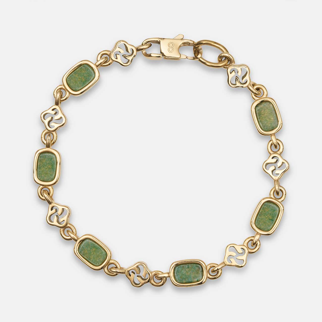 The Mineral Bracelet is a mix of the rich green Aventurine stone and our Heritage motif that creates a vintage-looking piece, finished off with a heavy duty lobster clasp for maximum comfort and durability.