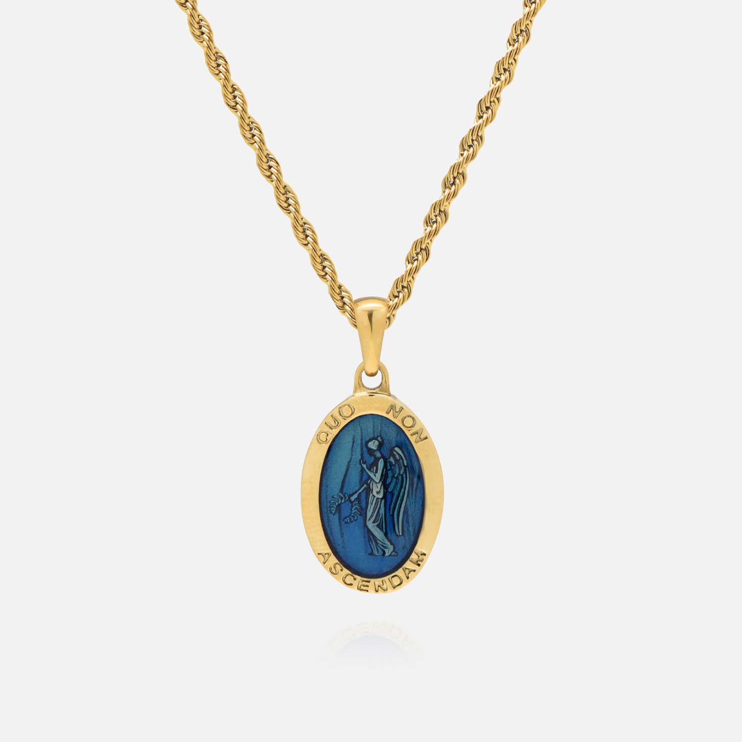 The Nike Pendant is inspired by the Greek goddess of victory, inscribed with “Quo Non Ascendam” — a phrase that challenges: “How high can I rise? There are no limits.”