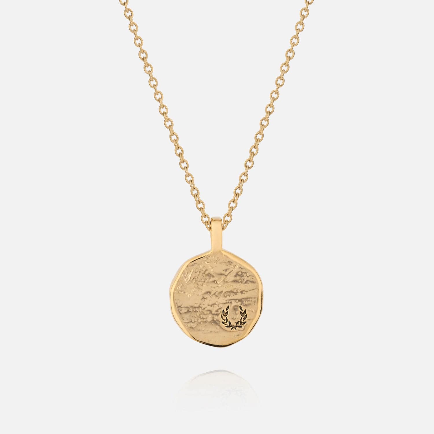 The Relic necklace celebrates a classic laurel wreath, emblematic of creativity and freedom, as well as victory and honor, while the reverse boasts the distinct Gasper logo. A timeless piece, it merges ancient motifs with a minimalistic approach, making it easy to style for any occasion.
