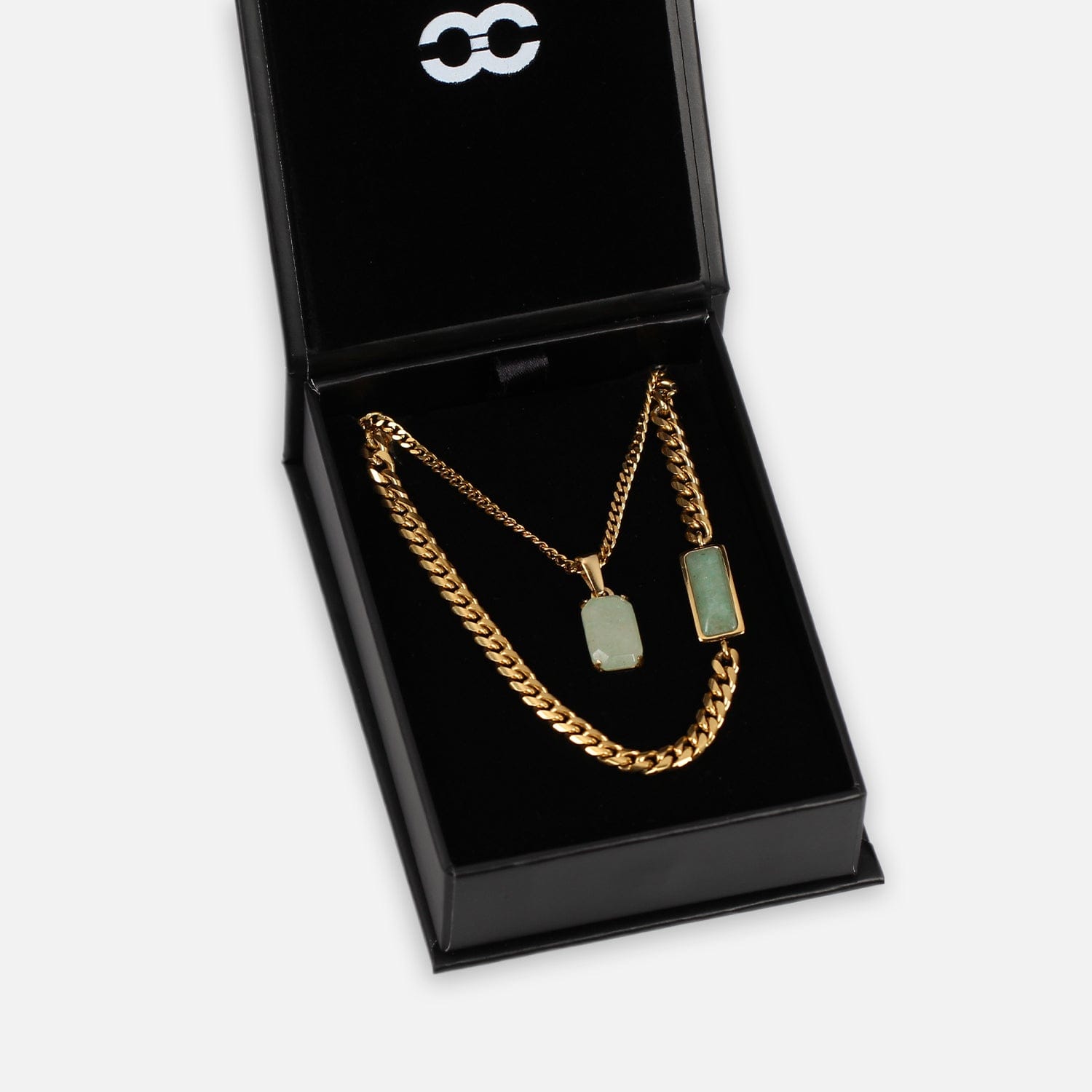 Includes Fusion Cuban chain in 20" / 50cm and Void Aventurine on a 2mm Rope chain in 22" / 55cm.