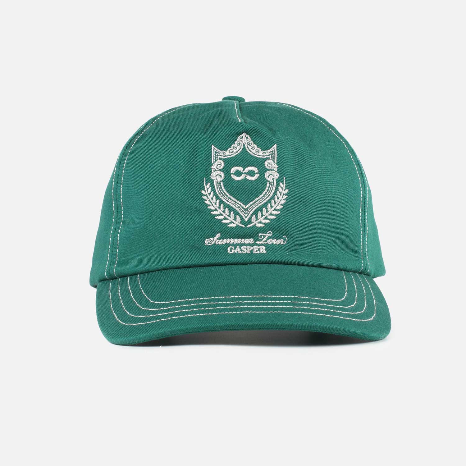 The Summer Tour Cap in Green channels vintage tennis style with crisp white stitching.