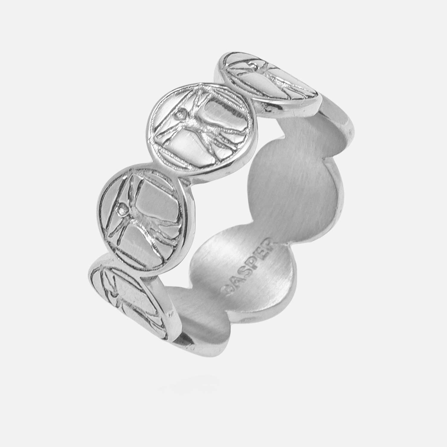 Crafted for everyday versatility, the Vitruvian Man Band Ring is bold yet refined — a piece that carries centuries of meaning while fitting seamlessly into the modern wardrobe.